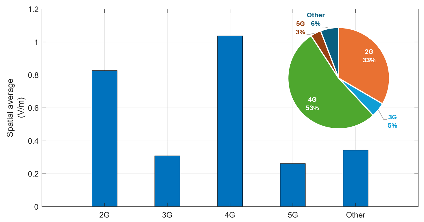 - Multi-dimensional Decomposition: Leveraging the frequency selectivity of the equipment, the study distinguished contributions by service type, cellular generation (2G, 3G, 4G, and 5G), and specific network operators.